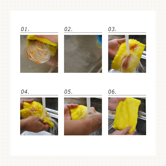 最初に水洗いした後に、よく絞ってからご使用下さい。