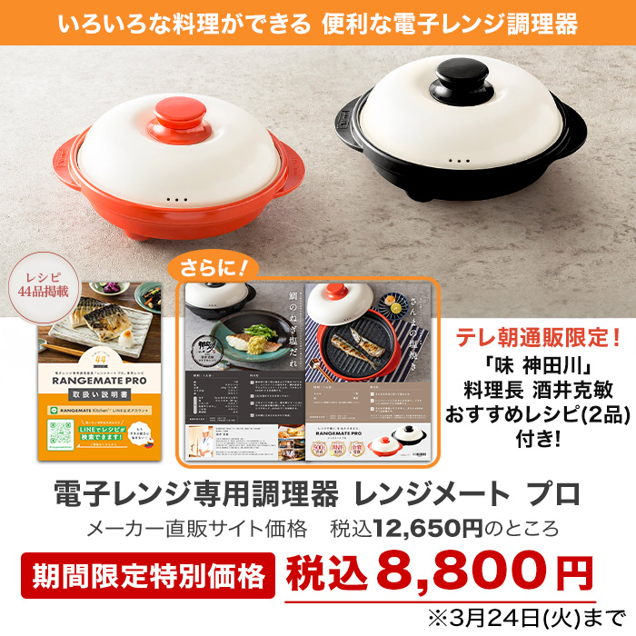 2026年3月3日(火)~2026年3月9日(月)迄に「電子レンジ専用調理器 レンジメート プロ」をご購入のお客様は税込8,800円にて販売いたします。