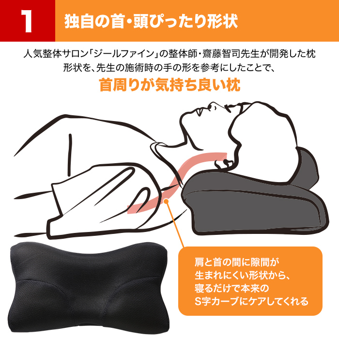 肩と首の間に隙間が生まれない形状から、寝るだけで本来のS字カーブにケア♪