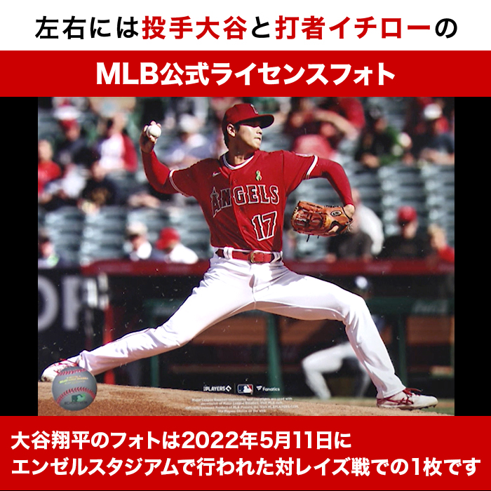 左右には投手大谷と打者イチローのMLB公式ライセンスフォト