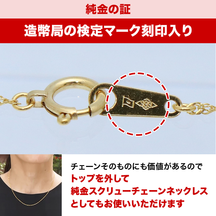 ●チェーン:純金スクリュー・約42cm(約3cmアジャスター管含む)・トップの取り外し可