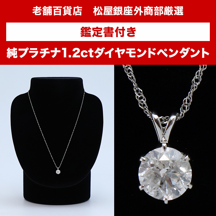 松屋銀座外商部 鑑定書付き純プラチナ1.2ctダイヤモンドペンダント