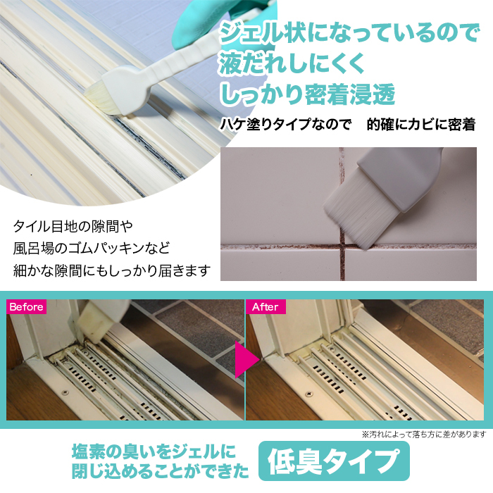 ハケ塗りタイプなので的確にカビに密着。