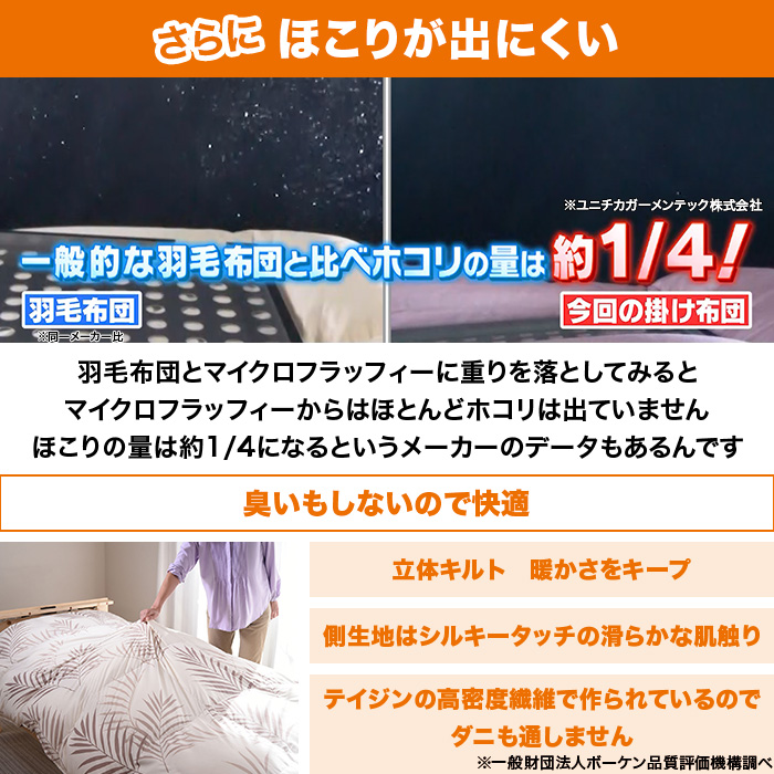 2点購入値引き!テイジン マイクロフラッフィー掛け布団 シングル