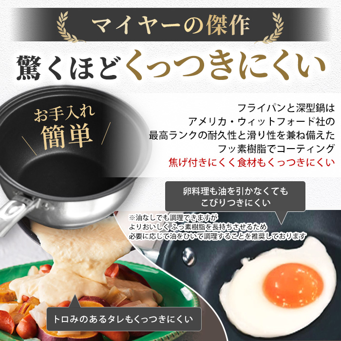 軽量&アメリカ・ウィットフォード社の最高ランクのコーティングでくっつきにくく、長持ち!フライパン3点セット