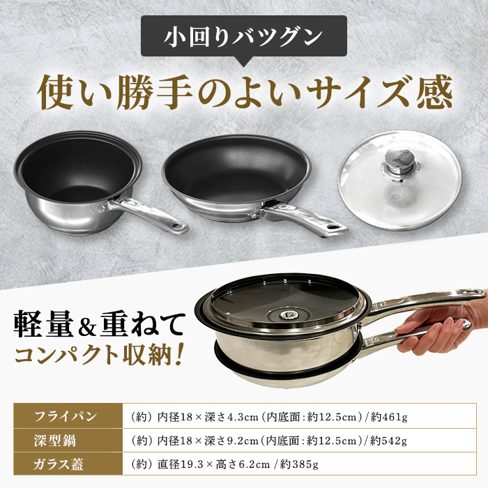 フライパン:(約)内径18×深さ4.3cm(内底面:約12.5cm)
