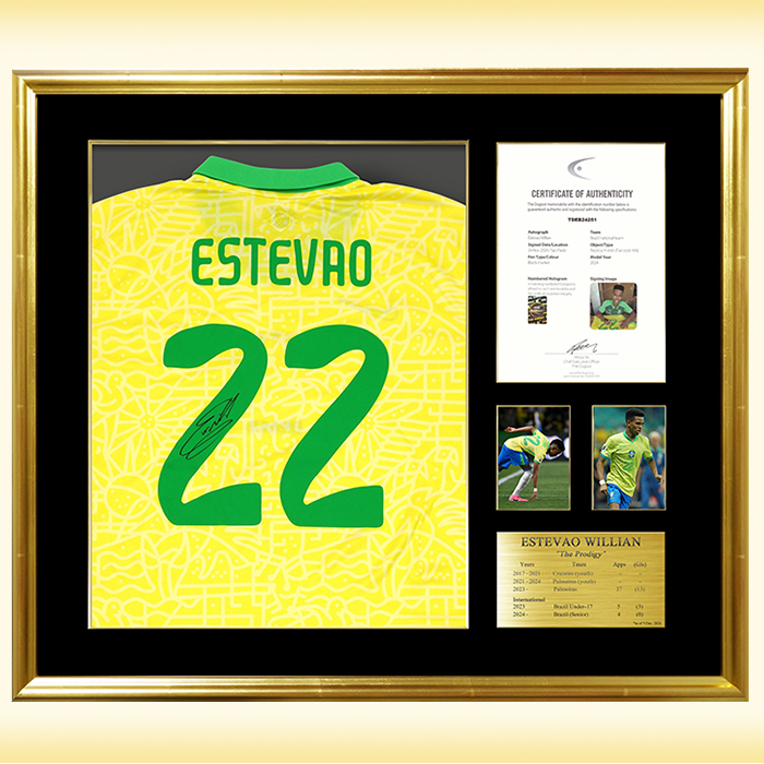 【エステバン直筆サイン入りブラジル代表2024ホームユニフォーム 特製フレーム】