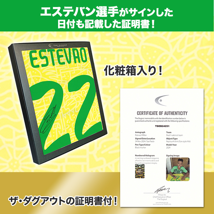 ・エステバン選手がサインした日付も記載した証明書!