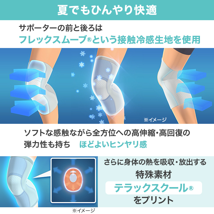 サポーターの前と後ろはフレックスムーブ®という接触冷感生地を使用