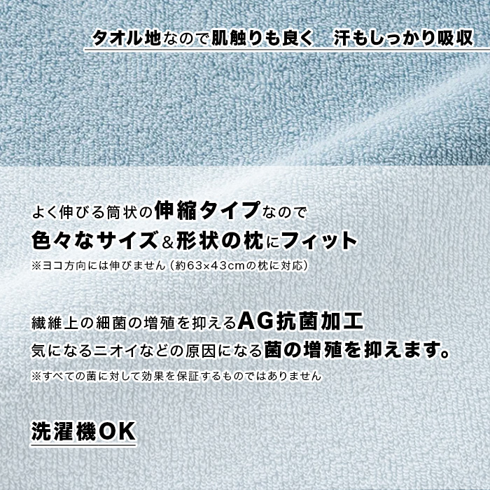よく伸びる筒状の伸縮タイプなので 色々なサイズ&形状の枕にフィット