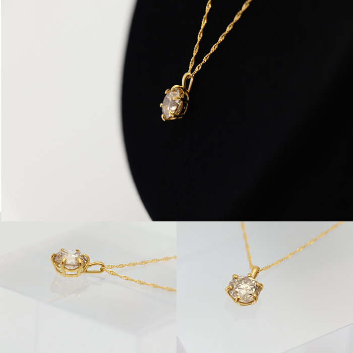 トップとチェーンには、大粒ダイヤにふさわしい高級素材純金