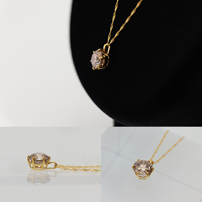トップとチェーンには、大粒ダイヤにふさわしい高級素材純金