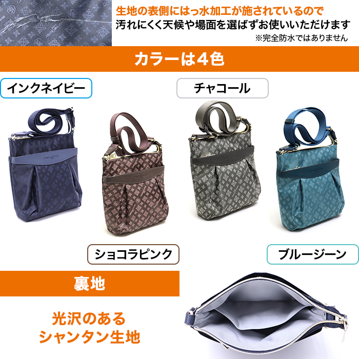 生地の表側にはっ水加工が施されているので汚れにくく、天候や場面を選ばずお使いいただけます