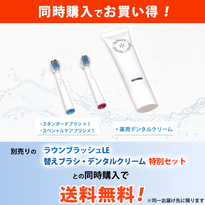 一度のご注文で「ラウンブラッシュLE」と「ラウンブラッシュLE 替えブラシ・デンタルクリーム 特別セット」を同時にご購入のお客様は送料無料でお届けいたします。