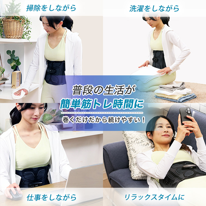 お腹に装着しながら有酸素運動もできるので効率的に筋トレ!