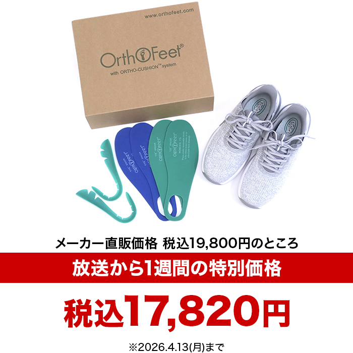 2026年4月7日(火)~2026年4月13日(月)迄に「オーソフィート プレミアムハンズフリーシューズ KITA(レディース)」「オーソフィート プレミアムハンズフリーシューズ YARI(メンズ)」をご購入のお客様は税込17,820円にて販売いたします。