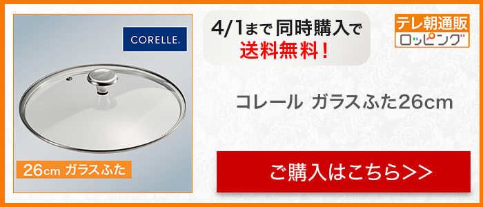2026年3月26日(木)~2026年4月1日(水)迄に一度のご注文で「コレール フライパン26cm」と「コレール ガラスふた26cm」を同時にご購入のお客様は送料無料でお届けいたします。