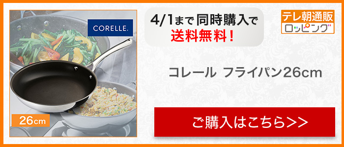 2026年3月26日(木)~2026年4月1日(水)迄に一度のご注文で「コレール フライパン26cm」と「コレール ガラスふた26cm」を同時にご購入のお客様は送料無料でお届けいたします。