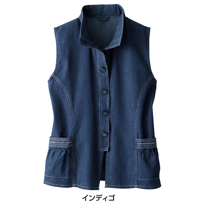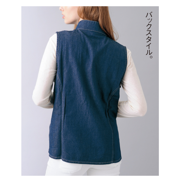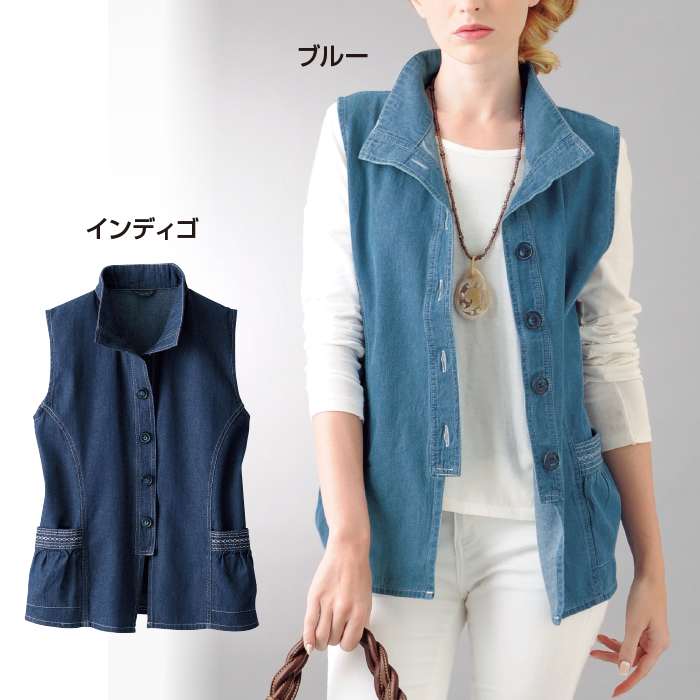 コーディネートの幅が広がるスタンド襟のベストを人気のデニム素材で作りました