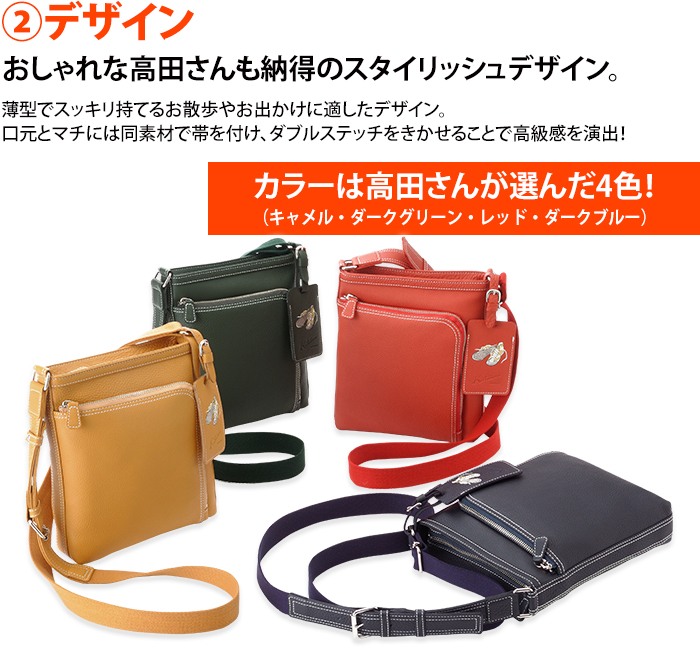 高田さんらしいおしゃれなデザインで上質感あふれるバッグはキタムラブランドならでは。