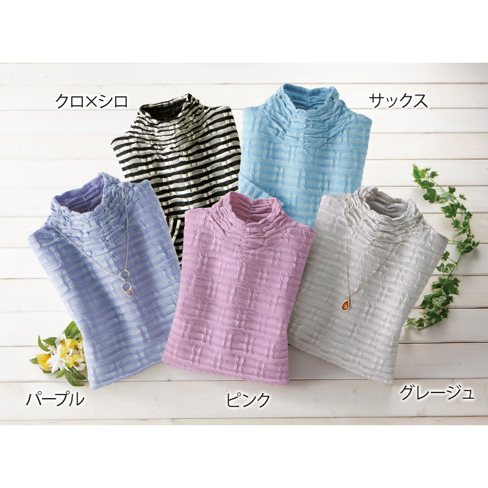 凹凸感と透け感がある素材なので肌にまとわりつきにくく快適な着心地です。