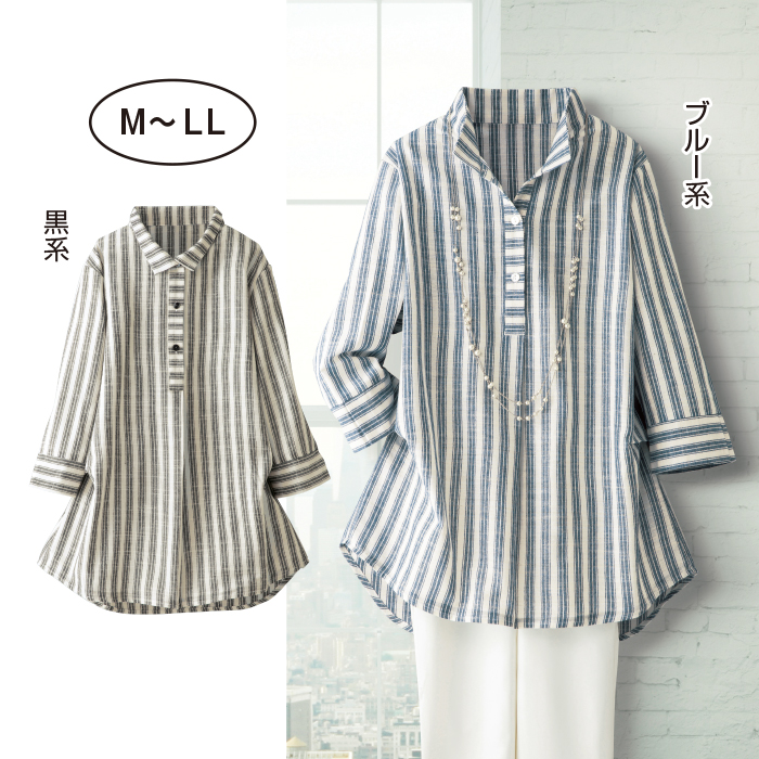 襟付ストライプ柄ブラウス