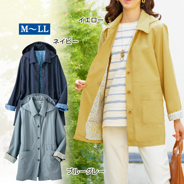 裏地がかわいいフード付はっ水ジャケット
