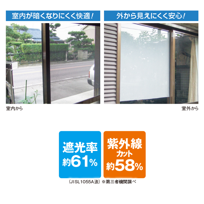 日中は外から室内が見えにくく、プライバシーを守り、室内は暗くなりにくい。