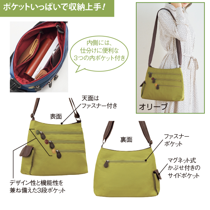 収納力、整理力、デザイン性に優れたショルダーバッグです。