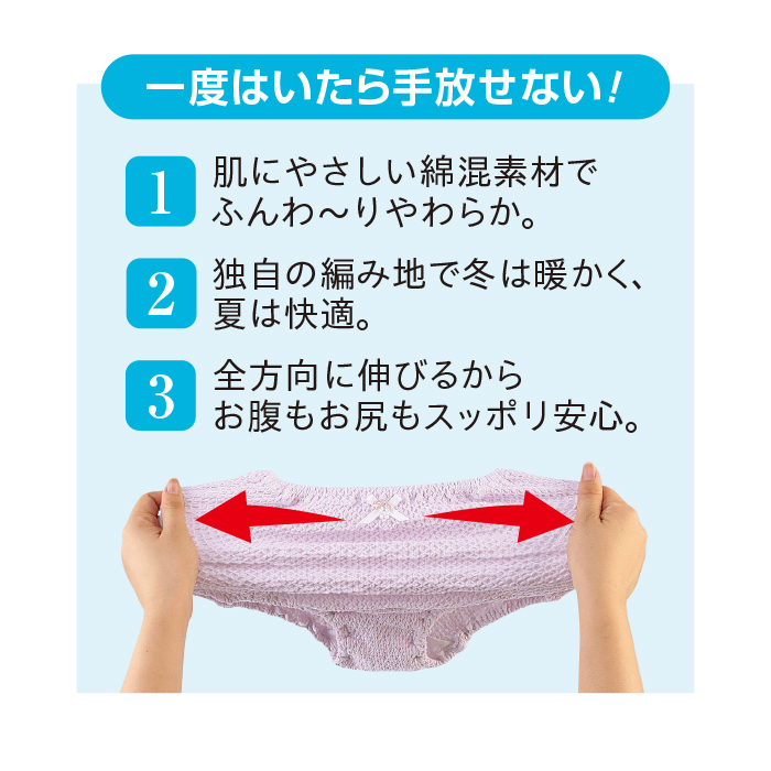 ③全方向に伸びるからお腹もお尻もスッポリ安心。