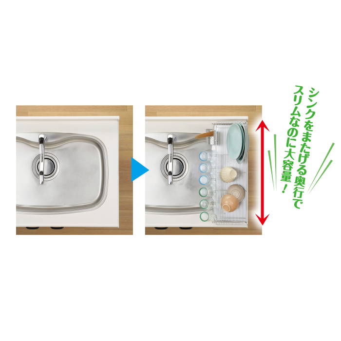シンクをまたげる奥行だから、幅が狭いシンクサイドでも設置可能。