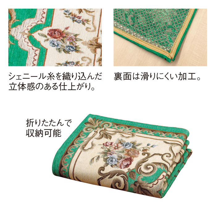 イタリアが誇るシェニール糸を織り込んだゴブラン織敷物は、長い歴史の中で愛され続けてきた逸品。