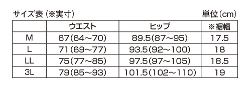ウエスト総ゴム、前左右ポケット付