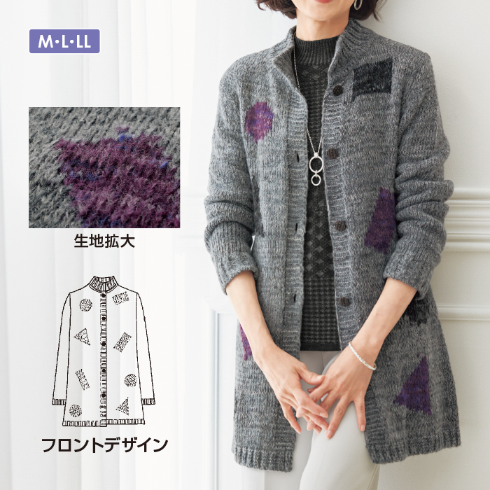 スタンド襟が今の季節にうれしいロング丈のカーディガン。