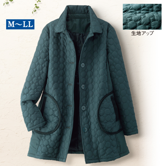 軽いのにしっかり暖かい。円形のキルト柄がアクセント
