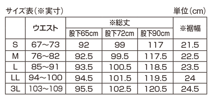 ※股下90cmは裾未処理のため、裾上げはご家庭にてお願いいたします。