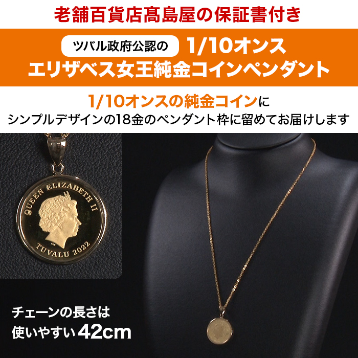 髙島屋エリザベス女王純金コインペンダント1/10オンス