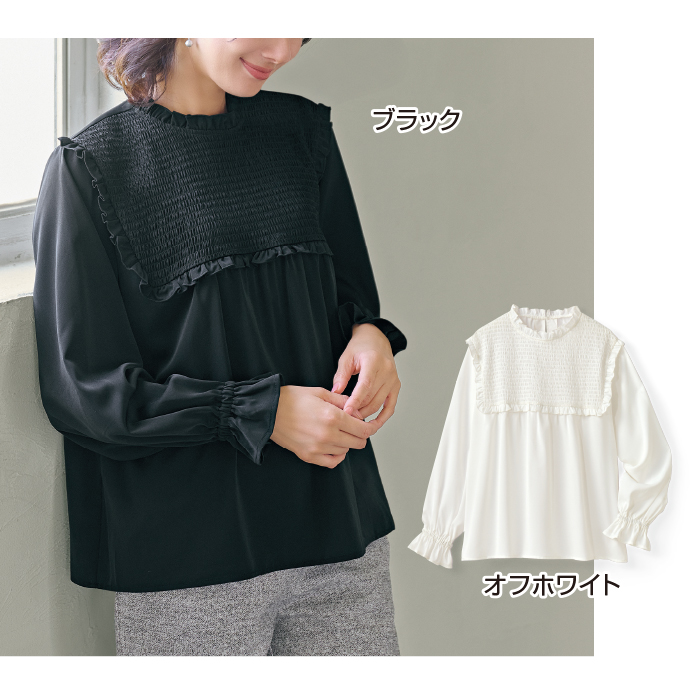 胸元シャーリングブラウス
