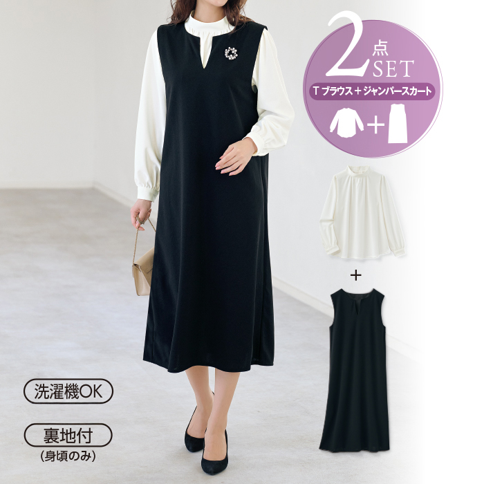 Tブラウス、ジャンパースカート(カラー:オフホワイト+ブラック)