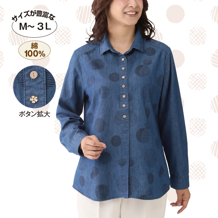 水玉柄デニムブラウス