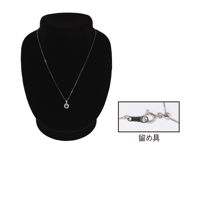サファイヤ:1石(0.4ct〈コーンフラワーブルー〉)、ダイヤモンド:16石(計0.24ct)
