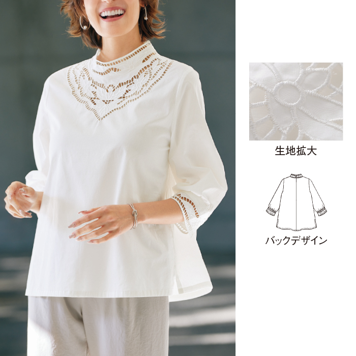 カットワーク刺しゅうがエレガントなサマーブラウス。