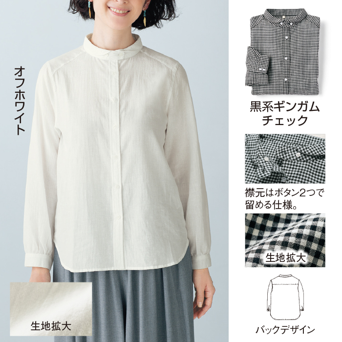 シンプルながら、小さめの丸襟にちょこんと2つ並んだボタンがアクセント。