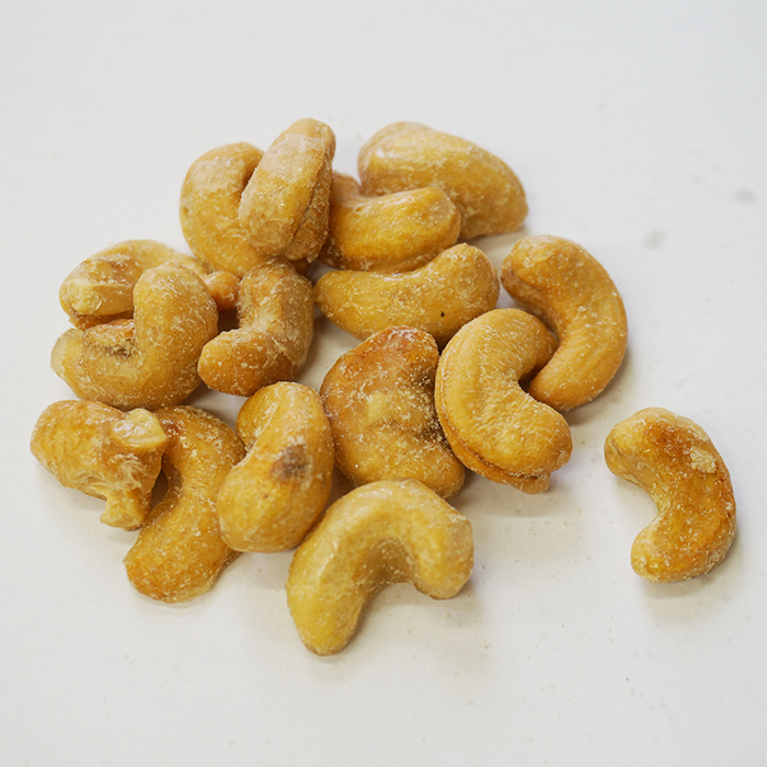 【カシューナッツ】カシューナッツ(インド産)、砂糖、水飴、植物油脂/乳化剤(一部に大豆を含む)