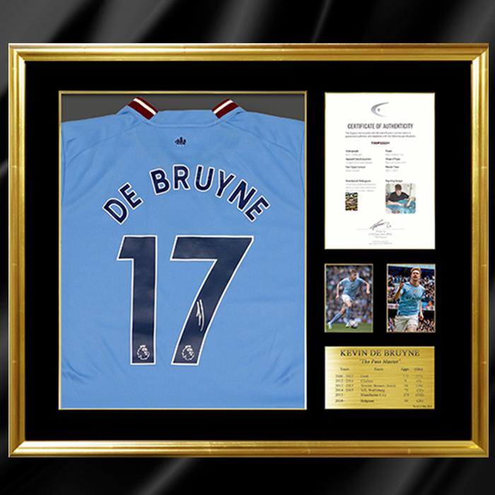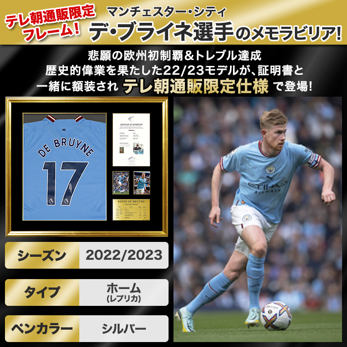 デ・ブライネ直筆サイン入りマンチェスターシティ22/23ホームユニフォーム特製フレーム
