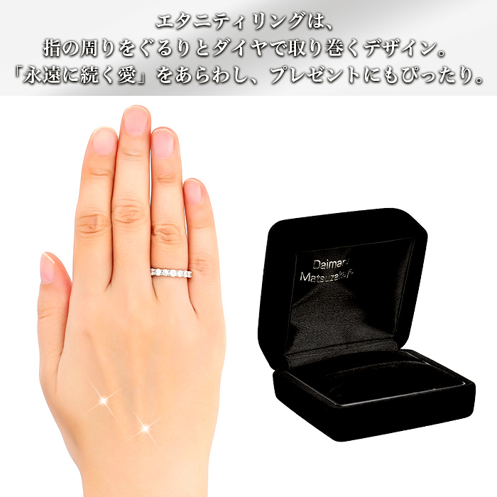 エタニティリングは指の周りをぐるりとダイヤで取り巻くデザイン。