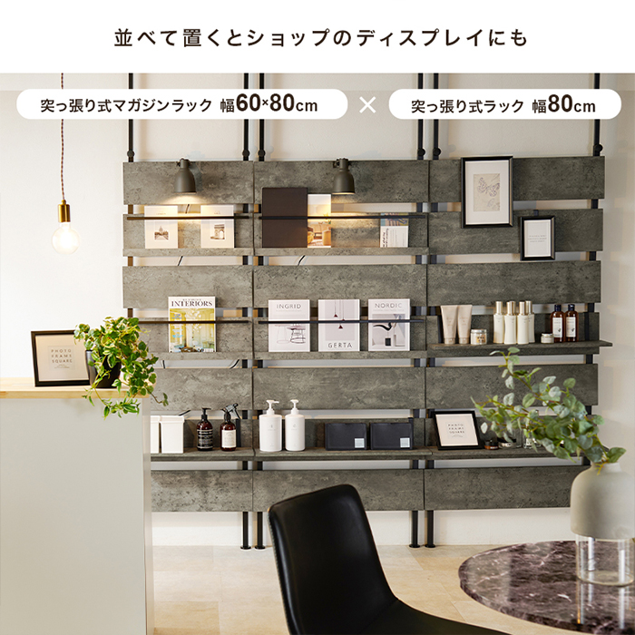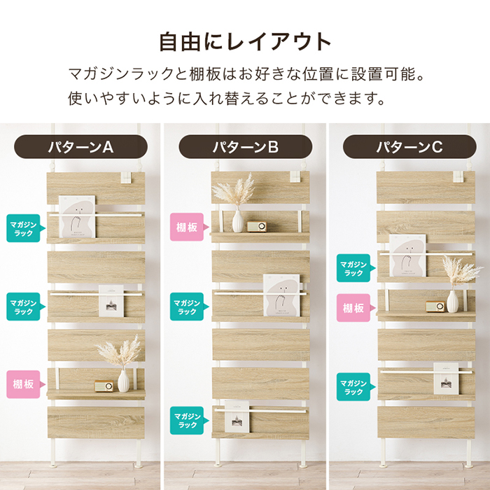 本の表紙をディスプレイできるマガジンラック付きの突っ張り式収納です。