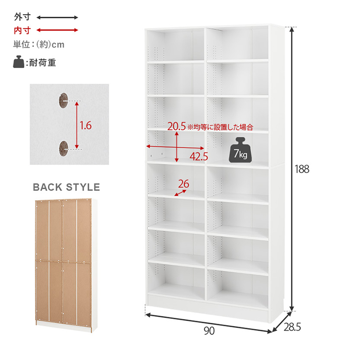 棚の高さを調節することで、ワイド版コミック・雑誌・書類なども収納可能