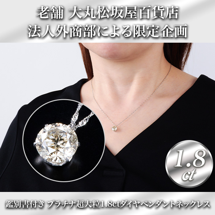 大丸松坂屋鑑別書付プラチナ大粒1.8ctダイヤモンドペンダント
