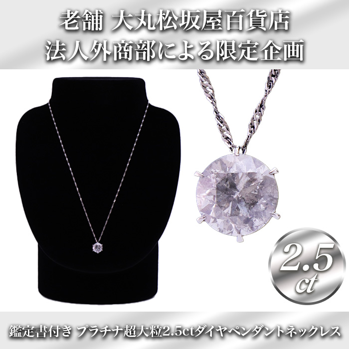 大丸松坂屋鑑定書付プラチナ大粒2.5ctダイヤモンドペンダント